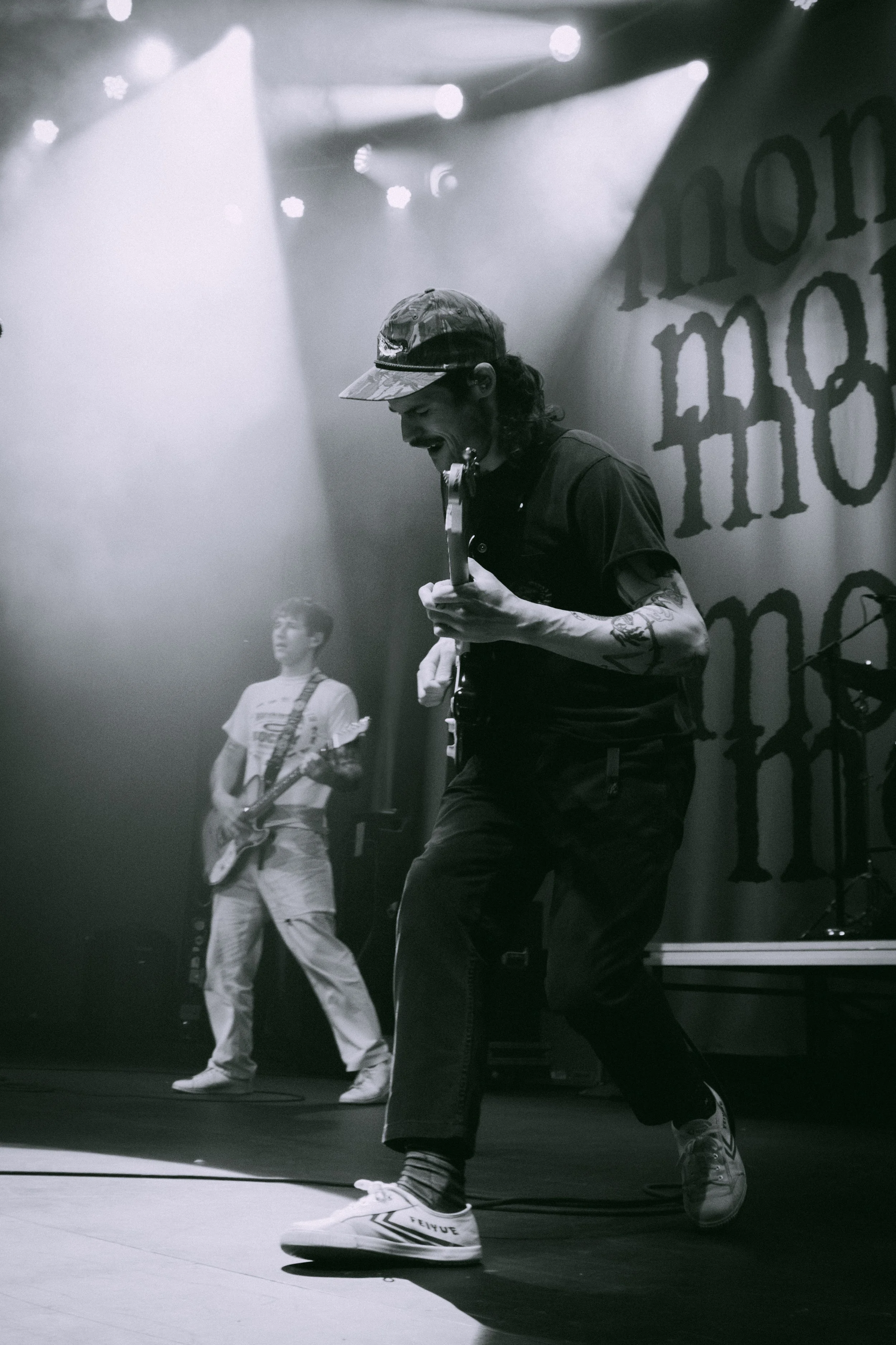 Despite being based out of California, Mom Jeans is often pinned as midwest-emo - a blend of emotional and introspective lyricism, strained or unconventional vocals, with influences from pop punk, indie rock, and post-harcore. The band brings a playful energy to the otherwise rather heavy-hearted genre, evident in song titles like “Shred Cruz” and “Pickle Bart,” both featured on the setlist. In between songs, audios from memes and vines play, as well as a voiceover poking fun at themselves - “one emo cliche after another emo cliche after another emo cliche.”