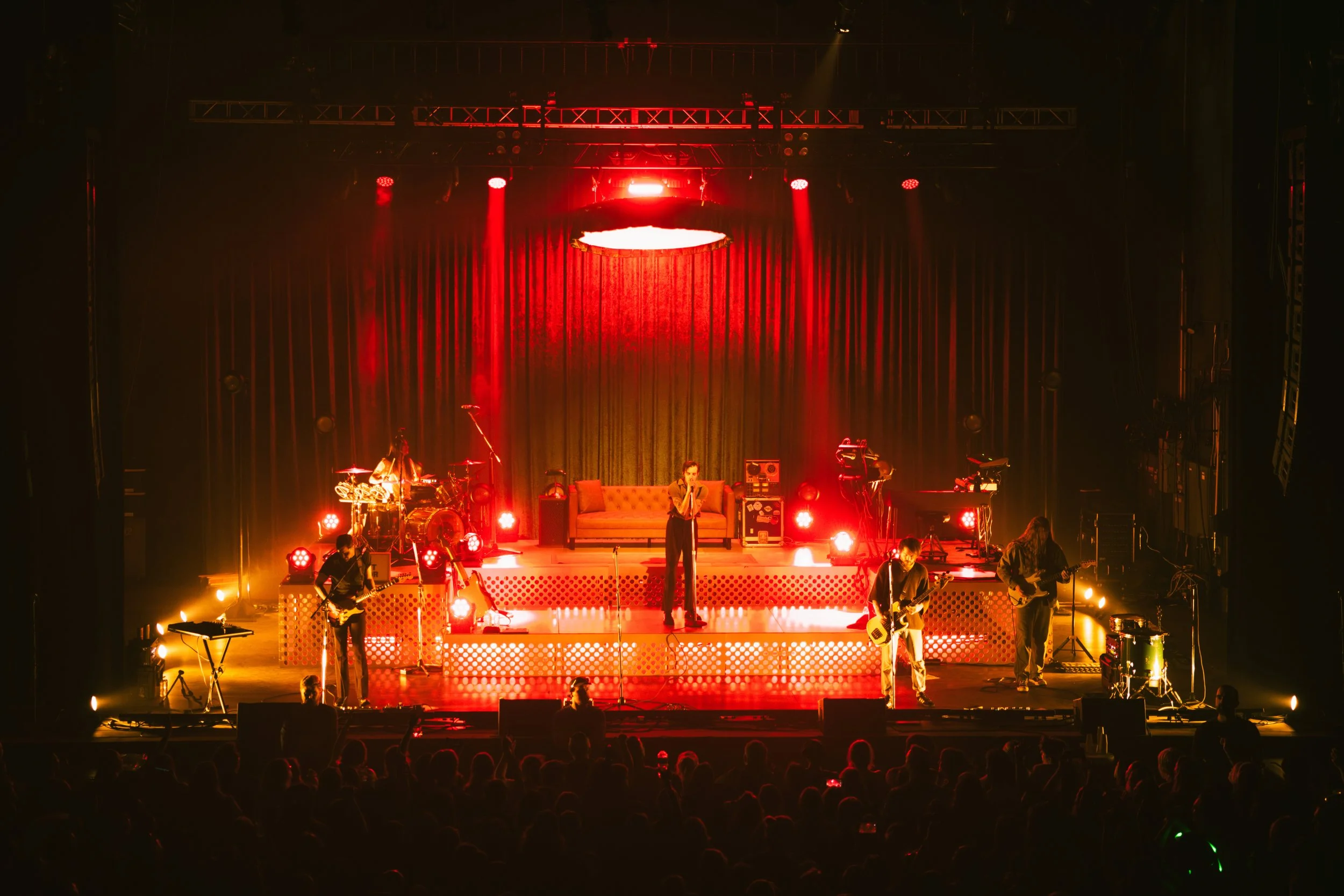 “Joy Next Door,” coined “the green era” due to its album art, was honored by fans decked out in the color, including several light up green cowboy hats. The room is bathed in a warm glow from an overhead light as the band takes the stage, consisting of guitarists Jared Monaco and Kennedy Brock, bassist Garrett Nickelsen, and drummer Pat Kirch, followed by frontman John O’Callaghan armed with only an acoustic guitar. The tone is set quickly with “Another Night on Mars,” “I Think About You All the Time,” and “Die to Fall” kicking off the set. Upbeat and easily danceable, The Maine has an ability to intertwine emotional lyrics with incredible energy. In particular, “Die to Fall,” the lead single off “Joy Next Door,” is an anthemic affirmation as the packed room chants “I feel alive.”